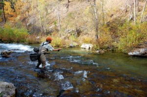 The rivers and streams around Deadwood are the home of several species of trout, as seen in this photo of Larry Myhre, while fly fishing caught several nice trout. (Larry Myhre Photo)