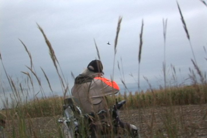 The tracked wheel chair allowed this double amputee veteran the opportunity to join in the hunt and shoot a few birds.