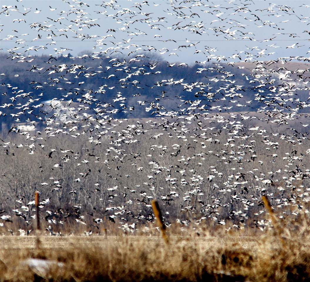 Last week, one of our Team members traveled to Omaha as flock after flock of Snow geese migrated north, with open water along the way holding huge numbers of the geese.